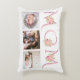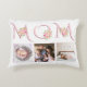rosa MAMMA typografi rosa ros fotoaccentkudde för Mors dag. Den har ord "MAMMA" i ett dekorativt avtrycksteckensnitt i rosa, buketter av rosa ros och tre foton. Baksidan har en mönster i ord "MAMMA". Vissa foton är läcker av fotografi © Storytree Studios, Stanford, CA