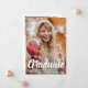 Modern studenten-meddelandekort med ett textöverlägg med "student" i ett tjockt skript tillsammans med student namn, klassår och high school namn över ditt favoritfoto med fullt-utfall. Baksidan har ett fyrkantigt foto (för totalt två bilder) tillsammans med ditt personlig-meddelande i svartvitt. Detta enkla annonskort är ett underbart sätt att fira ditt barns prestation och nyheterna med familj och vänner.