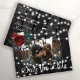Burgundött vin och vit peony ro bouquet med jägare grönt löv och strängar av vitt skäggigt ljus på mörk brun lada-trä skapar ett foto av chicen, med undantag för bröllop vykort. +++++++++ Enkel att anpassa med bild, namn och text! ++++++++ Lämpligt för blommigt vintertid, rustiskt land, jordbrukshus, berg, underland eller jultomten bröllop.