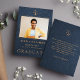 Modern elegant mörk navy Blue Läder look and faux guld law School studenten annoncard template med av rättvisa, anpassningsbar foto och text.