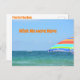 Ett ljust färgat strandparaply mot tropiskt hav med en närliggande båt, säger allt! Önskar att vi var här! All text på fram- och baksidan är anpassade. Så skicka önskemål på det här fotografiska tropicalmstrandkortet. Det här är en originalbild av stranden av JLW_PHOTOGRAPHY.