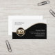 Det här fotografiska affärskortet innehåller svarta och vita segment som avgränsas av en vågigt guld-remsa. En elegant guld-ikon för en kamera ljuger på den nedre lämnat sidan av designen, som i allmänhet är lämplig för företag eller yrken som rör fotografi, kamera, syn, underhållning, digital bildåtergivning, kreativ konst.