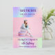 En modern och elegant Spara datum för en födelsedagsfest (i alla åldrar). Holografisk bakgrund, rosa, lila myntbakgrund grönt. Anpassa och lägg till ett foto, datum och namn.
