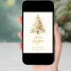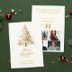 En mjuk beige bakgrund. Dekorerad med ett Julgran täckt i snö. Anpassa och lägg till fyra foton, ditt företag namn och ditt hälsning. God jul är skrivet med ett elegant handskrivet stil-teckensnitt.