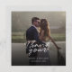 Ett underbart och tankeväckande sätt att tacka dina vänner, familj och medarbetare som tackade er för deras närvaro i din bröllopsdag med det här moderna fototacket som du kortar med skript med handskrivet "tack" och ett kärlek-hjärta.