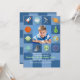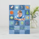 En inbjudan till din rymden-entusiaster på perfekten. Den blå schackbrädet på blå mönster har utrymmesrelaterade ikoner och ett mittfotofönster.