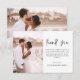 Ett minimalistiskt Bröllop-tack till dig som har ett foto på framsidan och baksidan. Tack-korten innehåller en modern handskriven kursiv skripttypografi som är elegant, enkel och modern till använda efter att du bröllopsdag firande.