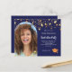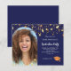Lägg till ett eget lodrät storlekt foto av student. En fotomarch ram. En chic marin blå bakgrund färg, dekorerad med faux guld stjärnor. Anpassa och lägg till information om namn och party. Golden brev.