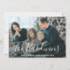 Skicka ut helgdag med det här moderna platta julkortet med två av dina favoritfoton och elegantens typografi. På framsidan finns ditt efternamn i ett stort format med vitt handskriftsteckensnitt över ditt favoritutfallsfoto på fullt. Baksidan har andra bild med ett enkelt vitt ram.