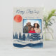 Rustic Winter Forest Måne Family Photo jul-Helgdag Card. Skogslandskap med vintersnöskog med Måne och snöflingor. Anpassningsbarnas foto i ram. Lägg till fotot, namn och år. Lägg till din önskeanteckning på baksidan av kortet.