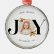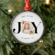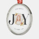 Den här moderna julprydnaden har en elegant och elegant utformning av snyggten med en aning elegans. På Ornament-framsidan visas en vacker "JOY"-design med ett känsligt gyllene ram, perfekt för att ta med ett uppskattat familjefoto. Det unika geometriska mönster med ett subtilt gyllene hölje tillför en något sofistikerad form och skapar en slående visuell dragningskraft.