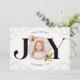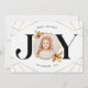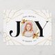 Det här moderna julkortet har en elegant och elegant utformning av snyggten med en aning elegant elegans. På kortets framsida visas en vacker "JOY"-design med en delikat guldfärgad ram, perfekt för att ta med ett uppskattat familjefoto. Det unika geometriska mönster med ett subtilt gyllene hölje tillför en något sofistikerad form och skapar en slående visuell dragningskraft. Kortets baksida innehåller ett hjärtligt budskap som önskar nära och kära en säsong fylld av glädje, skratt och kärlek. Den övergripande utformningen är både tidlös och festlig, och skapar det som ett val av perfekt för familjer som tittar att sin helgdag med nära och kära.