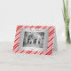 Anpassa med dina julhälsningar med eget foto. Ett centralt foto är inramat med två tonlägen silver grått ram på candy cane rand.