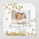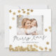 Festivt och originellt julhälsningskort med ett eget familjefoto på framsidan. Hela fotot är vackra guldfallande stjärnor. En handskriven typografisk text i snyggt med Merry X-mas. På andra sidan kan du lägga till ditt eget helgdag-meddelande och hitta fler små guld-stjärnor. Ursprunglig design från Luckz.