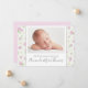 Den här designen har rosa baby-meddelanden, med ett sött, vismiskt blommönster med en modern chic botaniskt grönt stil med fotoutställning i bild och en elegant flicka blommor stil, en enkel minimalistisk, med en enkel nyfödd familjetypografi, vismisk vedlandshgrey och fjäterfly butterflies naturdesign, det är en flicka ny förälder.