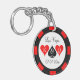 Fotokedja för anpassningsbar av mynt i kasino poker chip. Trendigets fest är för Vegas bröllopsfest. Rundmarkör med monogram av brud och groom. Ladda upp ett eget foto på baksidan. Speltematoken - nyckelring design med hjärtan och logotyp.