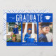 nyheten om ditt barns studenten med detta moderna foto i studenten i blått. Anpassa framsidan med tre äldre foton, året studenten, namn och namn i skolan. Kortets baksida har en samordnande blå och vit romb mönster.