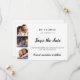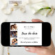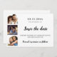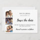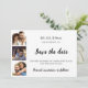 S Spara datumkortet för bröllop. Texten: Spara datumet skrivs med ett stort trendig-handskript i stil. Anpassa och lägg till tre foton. Du kan lägga till ditt party färg-schema i designen verktyg.