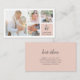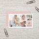 affärskorten för chic och elegant för fotografer innehåller fyra av dina bästa foton i en samlingslayout, med initialer eller monogram och namn i affärsvärlden i modern kalligrafi och blockering. Lägg till kontaktuppgifter för fullt längst bak på en rosa.
