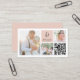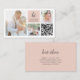 affärskorten för chic och elegant för fotografer innehåller fyra av dina bästa foton i en samlingslayout, med initialer eller monogram och namn i företaget i modern kalligrafi och blockering samt ett QR-anpassade. Lägg till kontaktuppgifter för fullt längst bak på en rosa.