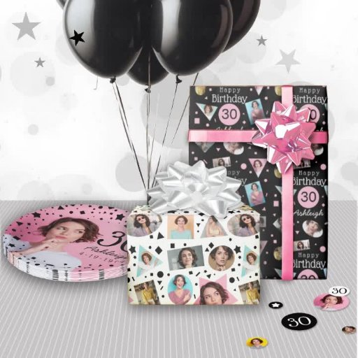 Pink Black White Confetti Photos 30th BirthdayDesignad av Mindy Pierce