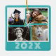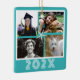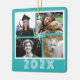 Turkos julprydnad med stjärndesign och fyra fotomallar. Med detta platta, kvadratiska träd-prydnadsämne kan stora familjer fler foton i ett litet paket. Det tropiska temat är blå och vit grönt. Stora siffror på framsidan för året är under de fyra bilderna. En vit havsstjärna mönster dekorerar baksidan med en formulering som kan omfatta hälsning, namn eller något som passar in i rymden. Personligens prydnadsföremål ger en underbar gåva till släktingar eller skapar en till en pojkvän/flickvän.