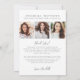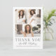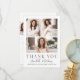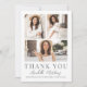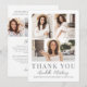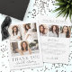Ett enkelt och elegant boho-inspirerat tackkort för examen med fotokollage för en personlig touch. Framsidan visar tre foton arrangerade i ett rent kollageformat, inramade av en elegant kant. ”TACK” visas framträdande, med examenens namn, skola och ”Klass av 2026” (eller något annat år) visas nedan i en stilren blandning av typsnitt för en modern och polerad look.