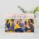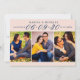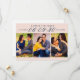 De här moderna och snyggt bröllop spara datum-meddelandekorten innehåller tre bilder på 2 x 3-förlovningar med det datum som visas i elegantens skript. Anpassa kortmallens ordalydelse på kortets framsida och baksida till din stora dag. Den rosans bakgrund och marinblå text färg kan anpassas för att samordnas med ditt program för bröllop färg.