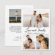 Ett minimalt tack för bröllop som innehåller tre (3) foto på framsidan och ett foto på baksidan. Med texten "Kärlek och tack" i ett handskrivet typsnitt för typografi i svart på vit bakgrund. Lägg till ditt namn och tack. Om du föredrar att skicka anteckningen tar du bara bort exempeltexten för att få mer utrymme.