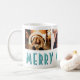 Modern God jul Typography Photo Collage Coffee Mugg. Denna moderna och enkla julklapp mugg kommer med God jul-text i trendigets typografi och tre fotosamlingar - lägg in dina favoritfoton i mallen. Underbar idé om en personlig julklapp till dina vänner och din familj.