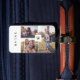 Modern och minimal kollage bagagetagg för fotorutnät. Utformningen har en 3 kvadraters rutnätslayout. Anpassa med egna foton, namn och monogram. Den omvända sidan har tre foton, namn och kontaktinformation.