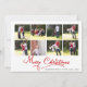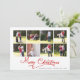 Red God jul calligraphy Photo collage jul-helgdag kort. En underbar design som innehåller en kollage av åtta familjer och texten "God jul" i röd kalligrafi. Baksidan har ett foto till och du kan lägga till ditt meddelande.