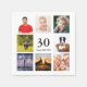 En napkin för en kille i 30års födelsedag party och firade hans liv med en kollage av 8 av dina foton. Mallar för åldern 30 år och datum. Födelsedatum eller datum för party. Svart färgad brev. Vit bakgrund.