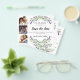 Observera att det här Spara datumet är pappert och mycket tunt. Kuvert ingår inte. Om du vill ha tjockare Spara datumkort (samma design) kan du besöka vår butik. Dekoreras med lavender- blommigtar och eukalyptus greenery. S Spara datumkortet för bröllop. Texten: Spara datumet skrivs med ett stort trendig-handskript i stil. Anpassa och lägg till tre foton.