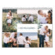 Vår familjekalender för fotokollage har vår handmålade eukalyptus och grönt löv i naturliga muterade sage- och tealnyser. Fintliga linjeritade blommor i blommigten kompletterar på ett vackert sätt vattenfärgsgrafiken för att skapa ett vackert blandat medium stil med ett biologiskt och modernt vattenfärgsverk stil. Skyddet är designat med sex fotosamlingar för att visning dina egna speciella familjefotografier och personliger med år och namn. Visning dina speciella minnesfoton på varje sida i kalendern. Sidor designade med alternerande fullt-layout och foton som ramats in med vattenfärgsgrön energi. Varje månad visas över fotona i en elegant skripttypografi. Baksidan av höljet är personlig med monogramstart. Alla teckningar som finns i den här eleganten är vattenfärgsfärgskalender för fotokortkollage som är handritade teckningar enligt Moodthology.