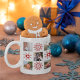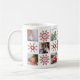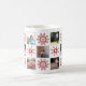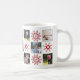 Fotokollage och röd snöflingor-julkaffe mugg. Den visar en fotokollage av elva 11-familjens foton och rött snöflingor. Alla foton utom ett är av fototyp © Storytree Studios, Stanford, CA