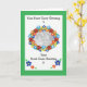 Ett foto-kort med grönt gräns och en ovalbar blommigt "ram" för ditt foto, gott om utrymme för ditt eget hälsning, både i och på framsidan. Från en handmålad papper kollage av Judy Adamson.