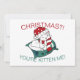 Jul! Du är kattunge mig! Kan du inte tro att julen är runt hörnet? Det kan vi inte heller! Skicka dina semesterhälsningar till dina vänner och din familj i år med den här fina katten med en festlig julhatt illustration. Lägg till foto och personligt meddelande för din favoritfamilj på baksidan av kortet. Du kan ändra teckensnitt, storlekt teckensnitt och färg.