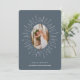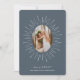 semesterhälsningar med den här chicen och minimalistiska julkort med lodrät- eller porträtt-orienterat foto, inramat av en hand plockade solsprängningsillustration i vitt på mjukt skiffer blått grått. "Alltid merry" visas under vitt serif och kursiv stil. Anpassa med anpassningsbarna hälsning och namn under. Ett kort för elegant med ett modernt och minimalt estetiskt helgdag som låter ditt favoritfoto skina.