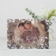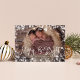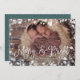 Ett enkelt och chic helgdag-fotokort har ett foto som är övertäckt av din favoritfamilj med en vit bokeh gräns som frammanar utseendet på en isig, ett frostigt fönster. "Merry & Bright" visas längs grund i modern, vit skriptskrift. Anpassa med din familj namn och året som är inkapslat i designen. Kort som återgår till en subtil vinodling mönster i grönt av grisen.