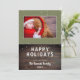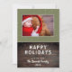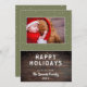 Cute Rustic Mörk Wood Helgdagars Photo Card. Skapa ett eget fotopapport för helgdag i familjen - anpassa kortet med din text och lägg till ditt favoritfoto i mallen. Bakgrunden är rustik mörk brun trä struktur, vit snöflingor mot oliv grönt bakgrund och texten är i trendig vit typografi.