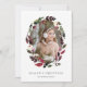 Elegantens botaniska helgdagskort har ett favoritfoto som omges av en skortikal oval krans av mjuk grönt, maronblad och blommor. Anpassa med din anpassningsbar hälsning och namn under, visas med "Season's Greetings".