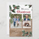 Fotokort för rostiskt trä, snö och vintergrönt julkort för helgdag. Personlig enkelt med dina foton och namn! Ytterligare text kan läggas till på baksidan.
