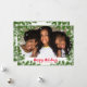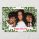 Glad helg-fotokort med grönt träd gräs nål och vit snöflake gräns runt ditt favoritfoto. Skapat av © Lesruba Designs.