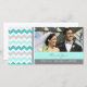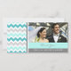 Bröllop tackar dig för bildkorten i elegant och modern ljusa turkoshakblått, grått och vit chevron zigzags mönster. Ett perfekt sätt att tacka vänner och familj för bröllopsgåvor och dina bröllop-foton. Finns i matchande porto och många andra produkter för bröllop.