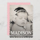Fantastiskt utfallskort med fullt med en fantastisk löv som upprepar rosa och vit mönster tillbaka. Vit typografi täcker över utfallsfotografiet för fullt med flicka namn". Lägg till ditt eget foto från flicka snabbt och enkelt genom att klicka på den lilla miniatyrbilden av exempelfotot och sedan ladda upp ditt eget foto. Du kommer att se de ändringar som gjorts i skärm omedelbart. Den Fabulous Porträtt-fotografi som används i detta moderna fullt-format för utfallsfoto är tack vare den begåvade fotografen Carrie Keller Bitting of the Woven Nest Photography Pty Ltd - North Carolina, USA.