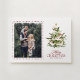 Ett kort för färgen helgdag med vattenfärgen Julgran överdragen med en gyllene stjärna och mjukt rött och grönt. Framsidan innehåller utrymme för ditt favoritfoto tillsammans med ett God jul-meddelande, medan baksidan levereras med ett säsong hälsning som du kan behålla eller ersätta med ditt eget ord. Ett perfekt till varmt önskemål med vänner och familj.