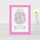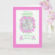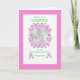 En inbjudan till söt rosa, vit och grönt att bli Godmor för dig att personifiera med ett foto och Baby namn, från en handmålad papper kollage av Judy Adamson.