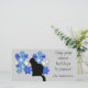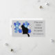 Svart katt som betraktar blåa och vita snöflingor. Personalisera hälsningen "Må din vinterlov bli glädjerik!" samt avslutningen/efternamnet