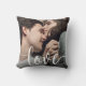Den här fina kudden visar "kärlek" i ord i ett modernt, vitt skript med parets foto som visas bakom. Välj bakgrunden färg på kuddens baksida för att matcha fotot eller dekoration.